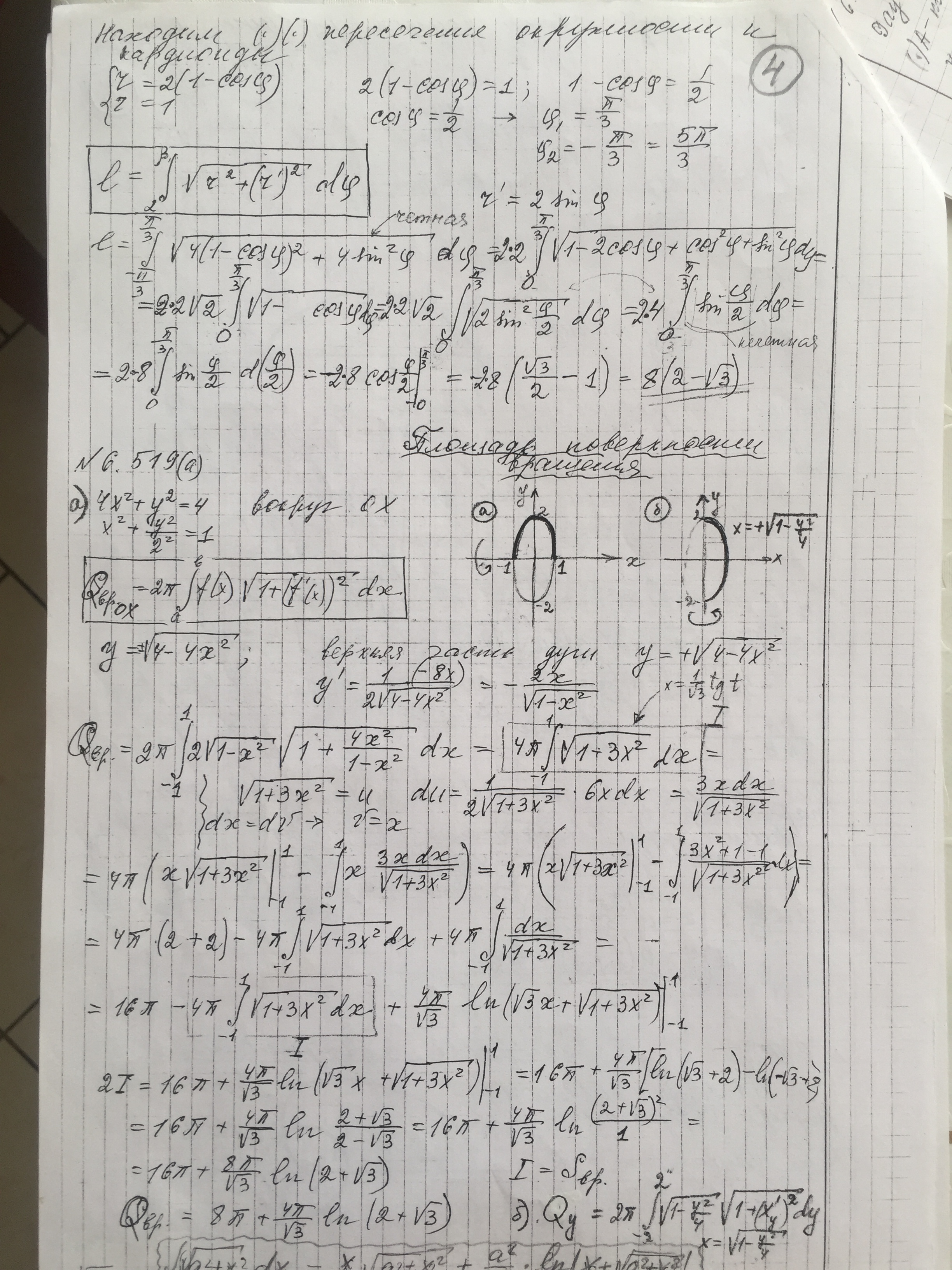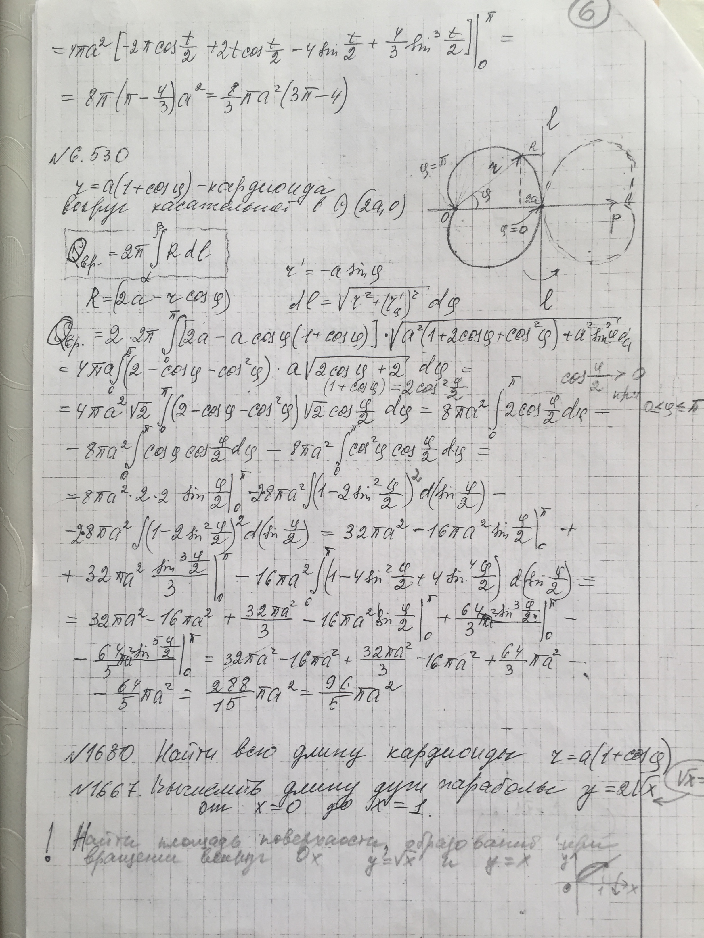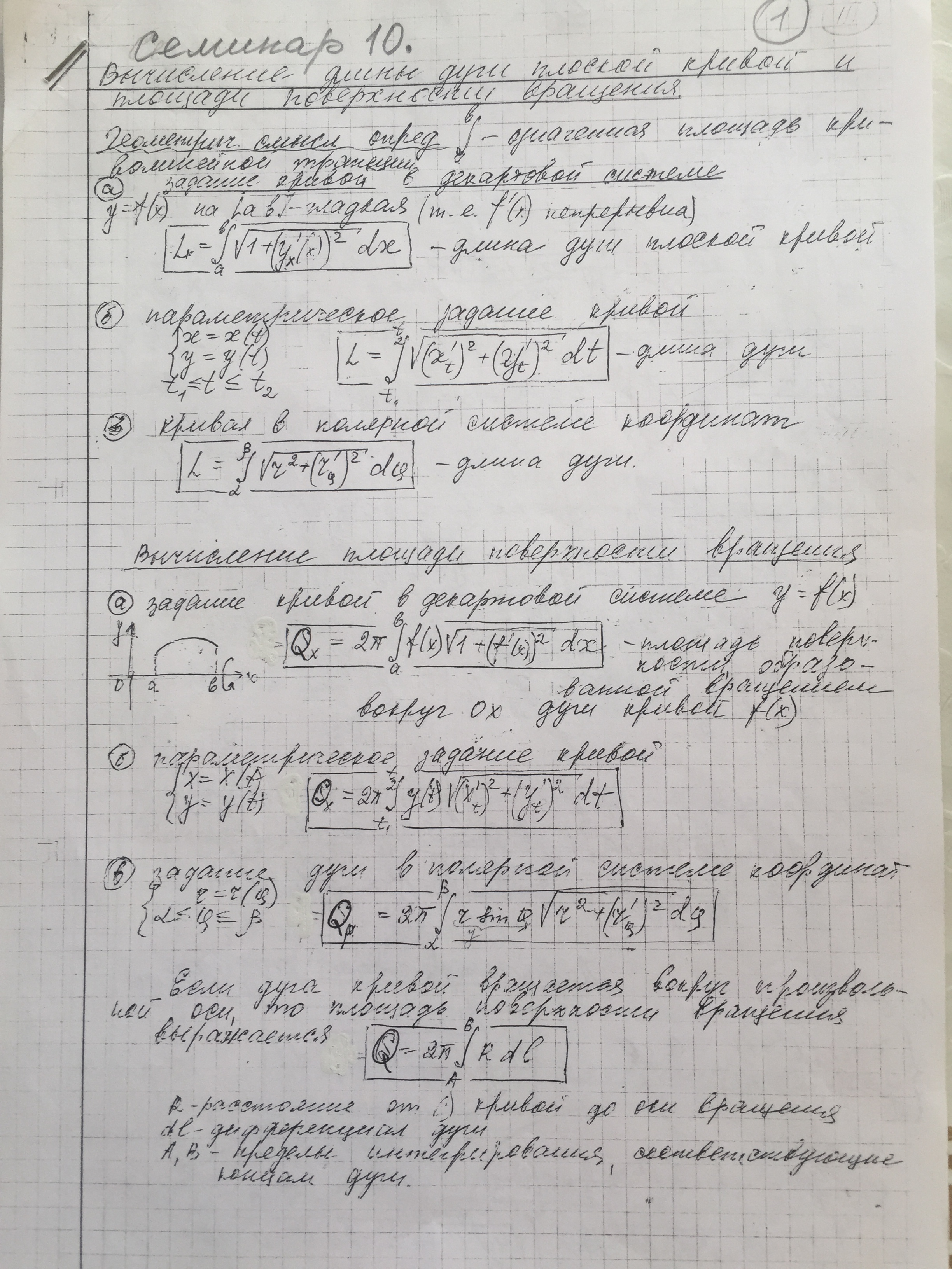 Семинар № 10 вычисление длины дуги и площади поверхности вращения
